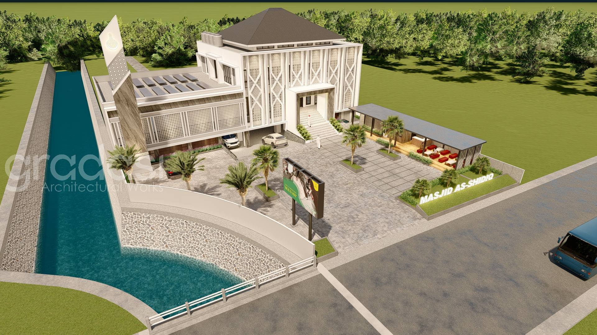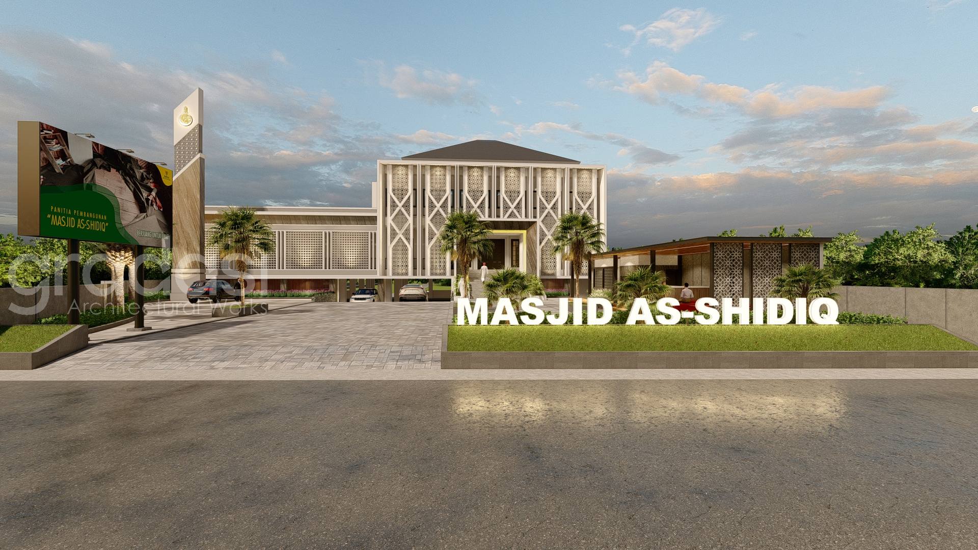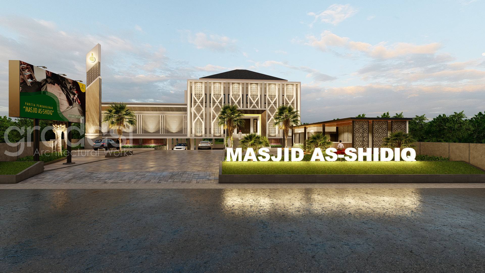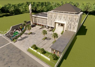 Desain Arsitek Exterior Masjid As Shidiq oleh Gradasi Arsitek yang Berlokasi di Surabaya, Jawa Timur