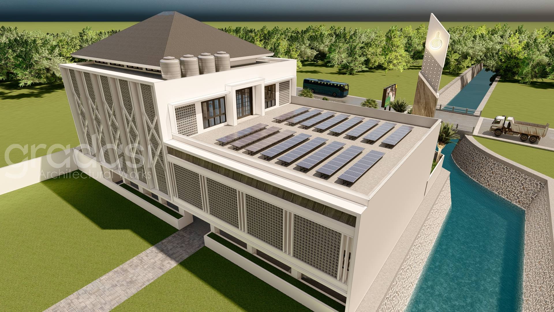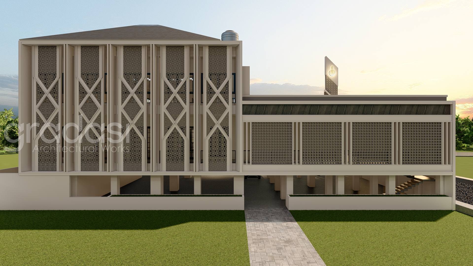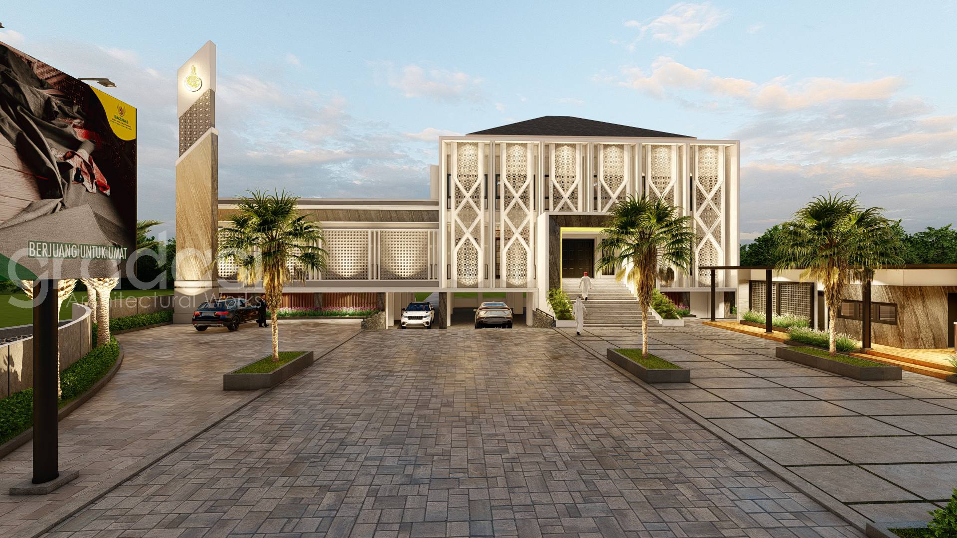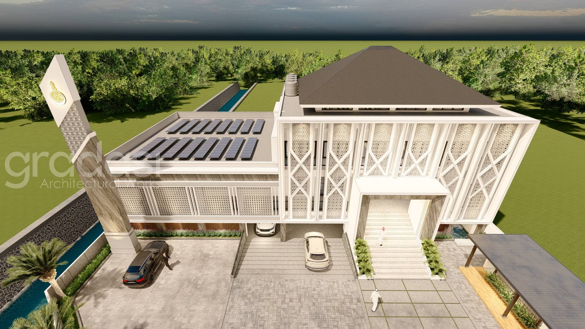 Desain Arsitek Exterior Masjid As Shidiq oleh Gradasi Arsitek yang Berlokasi di Surabaya, Jawa Timur