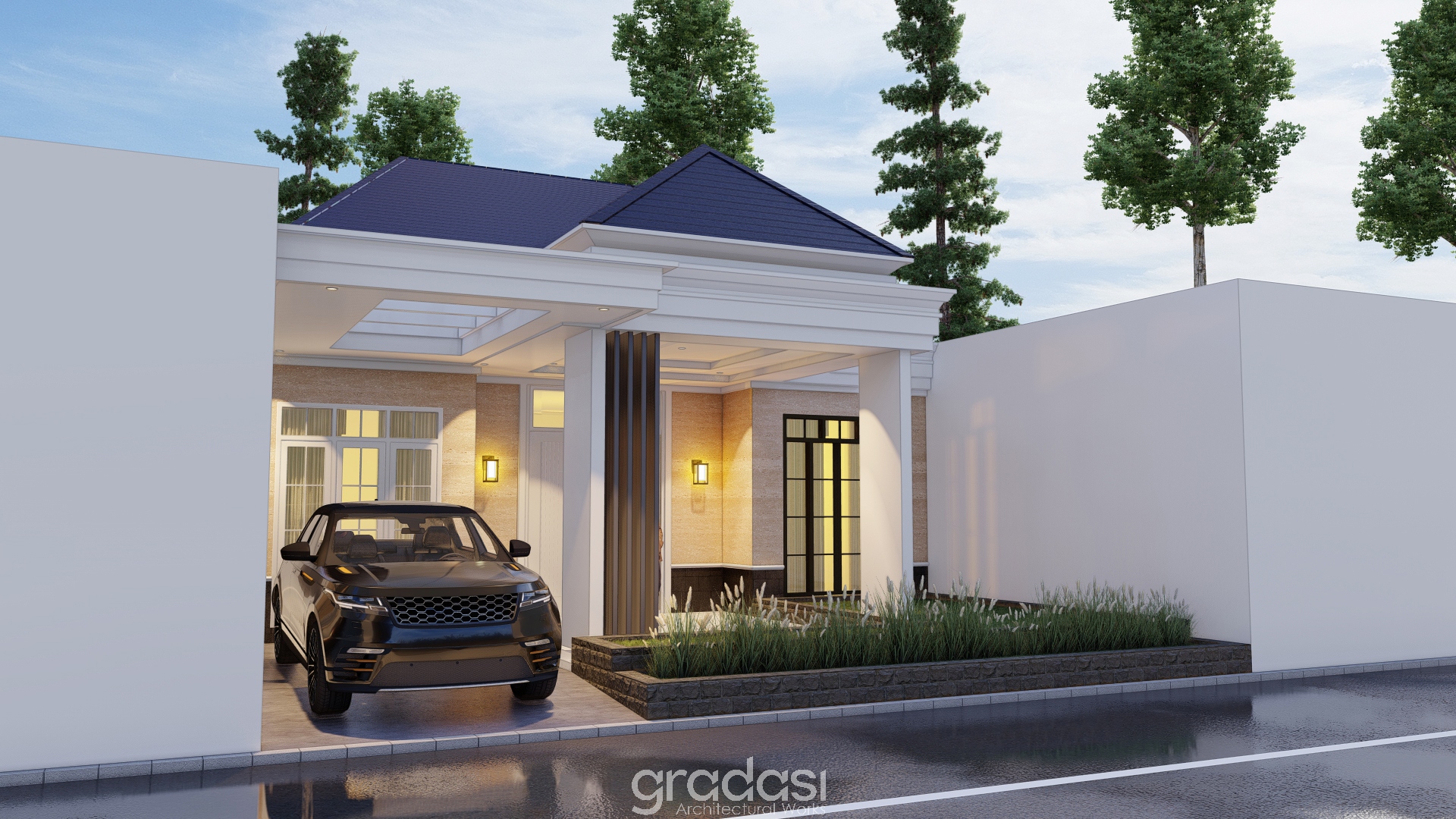 Arsitek Exterior Desain Fasad Rumah Klasik oleh Gradasi Arsitek. Client Ibu Ulfa yang Berlokasi di Pangkal Pinang. Hubungi untuk Selengkapnya