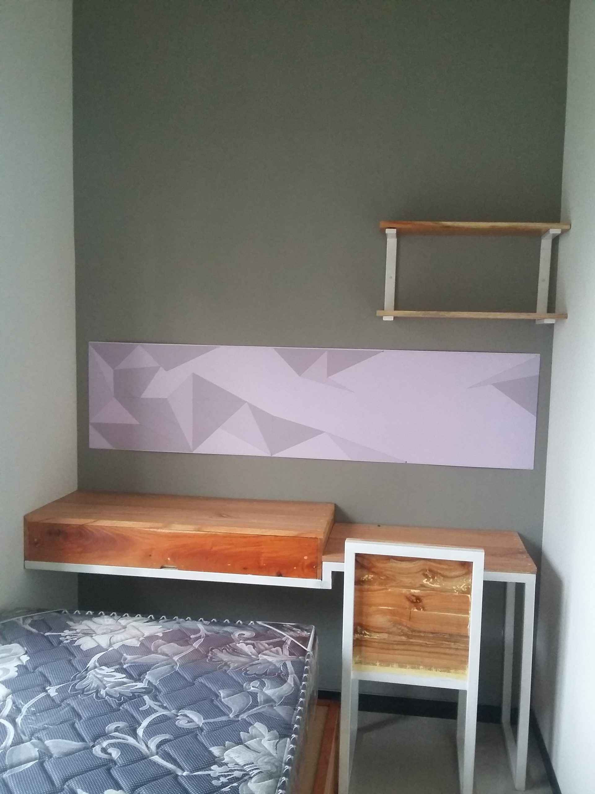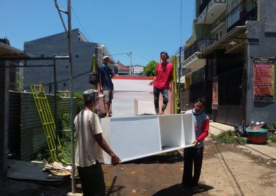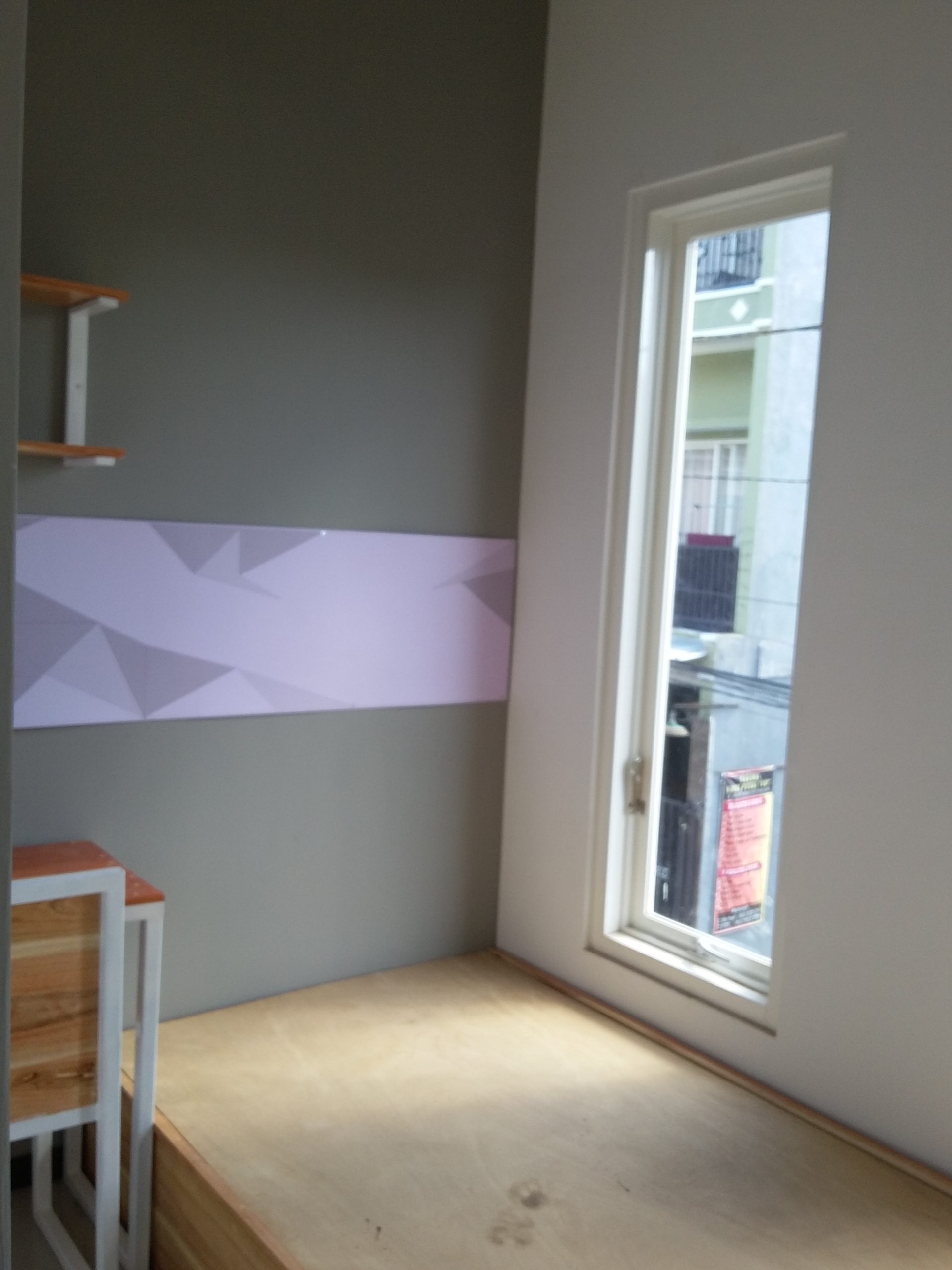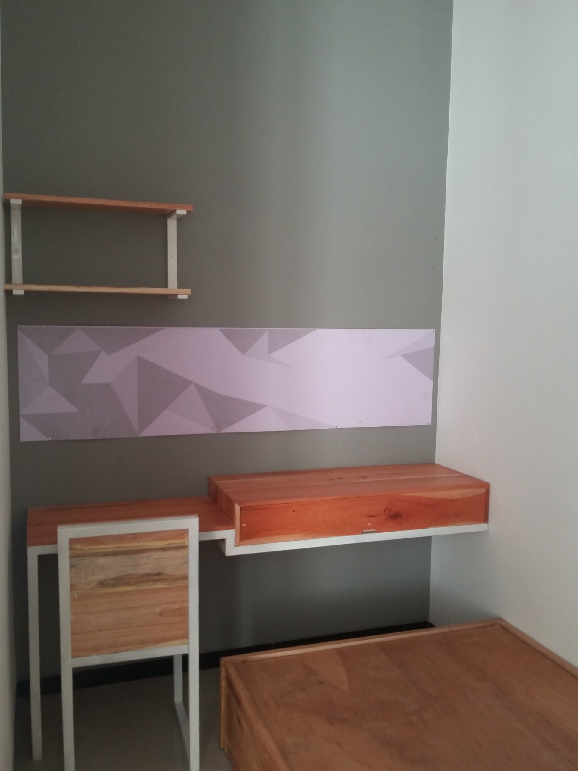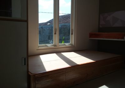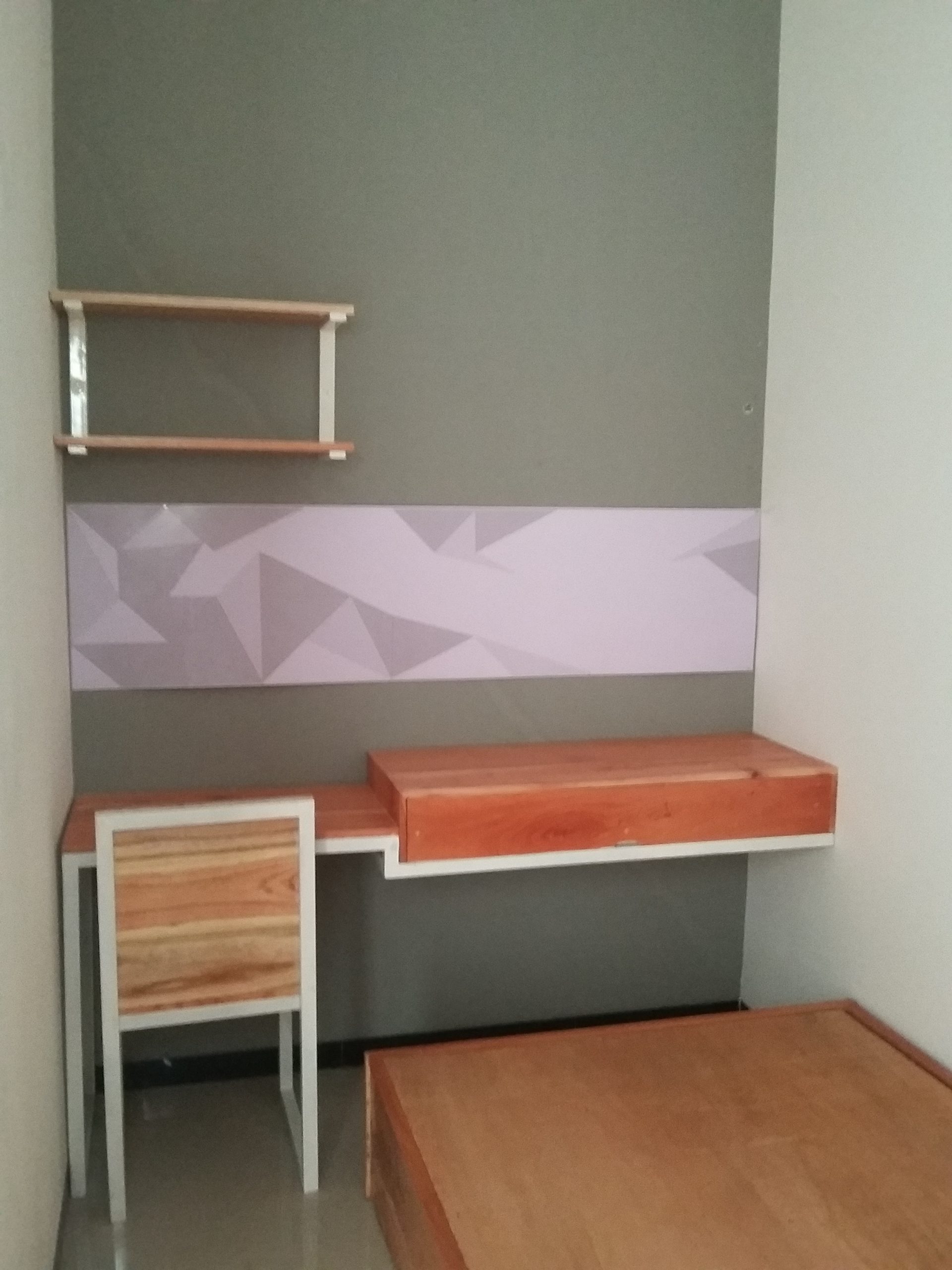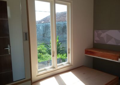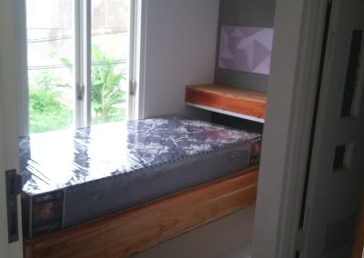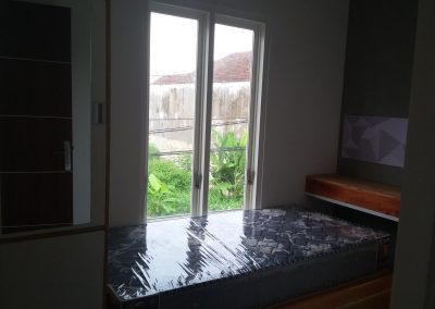 Proyek interior kos Sigura – Gura dengan item dipan, meja belajar, lemari dan finishing.