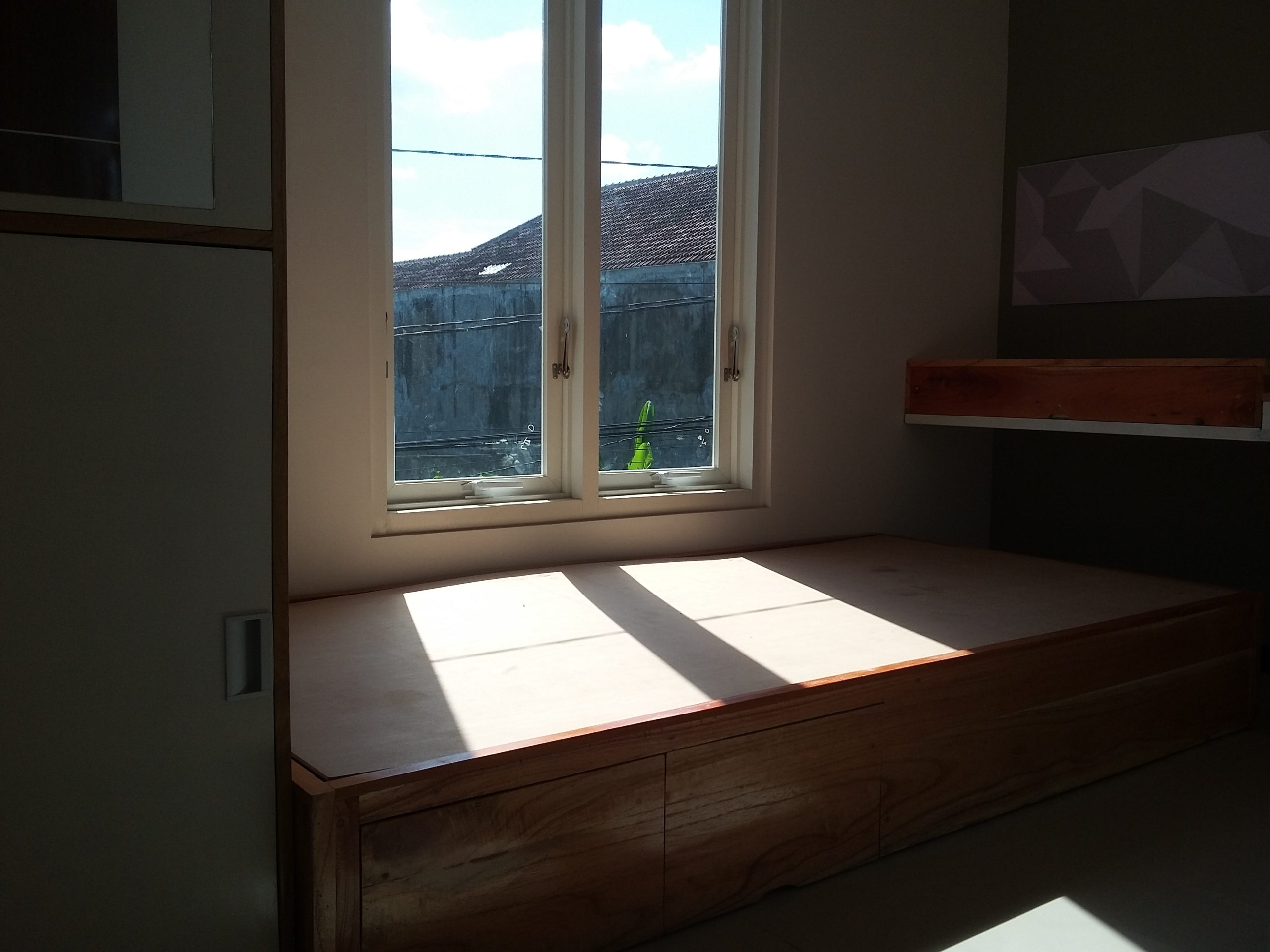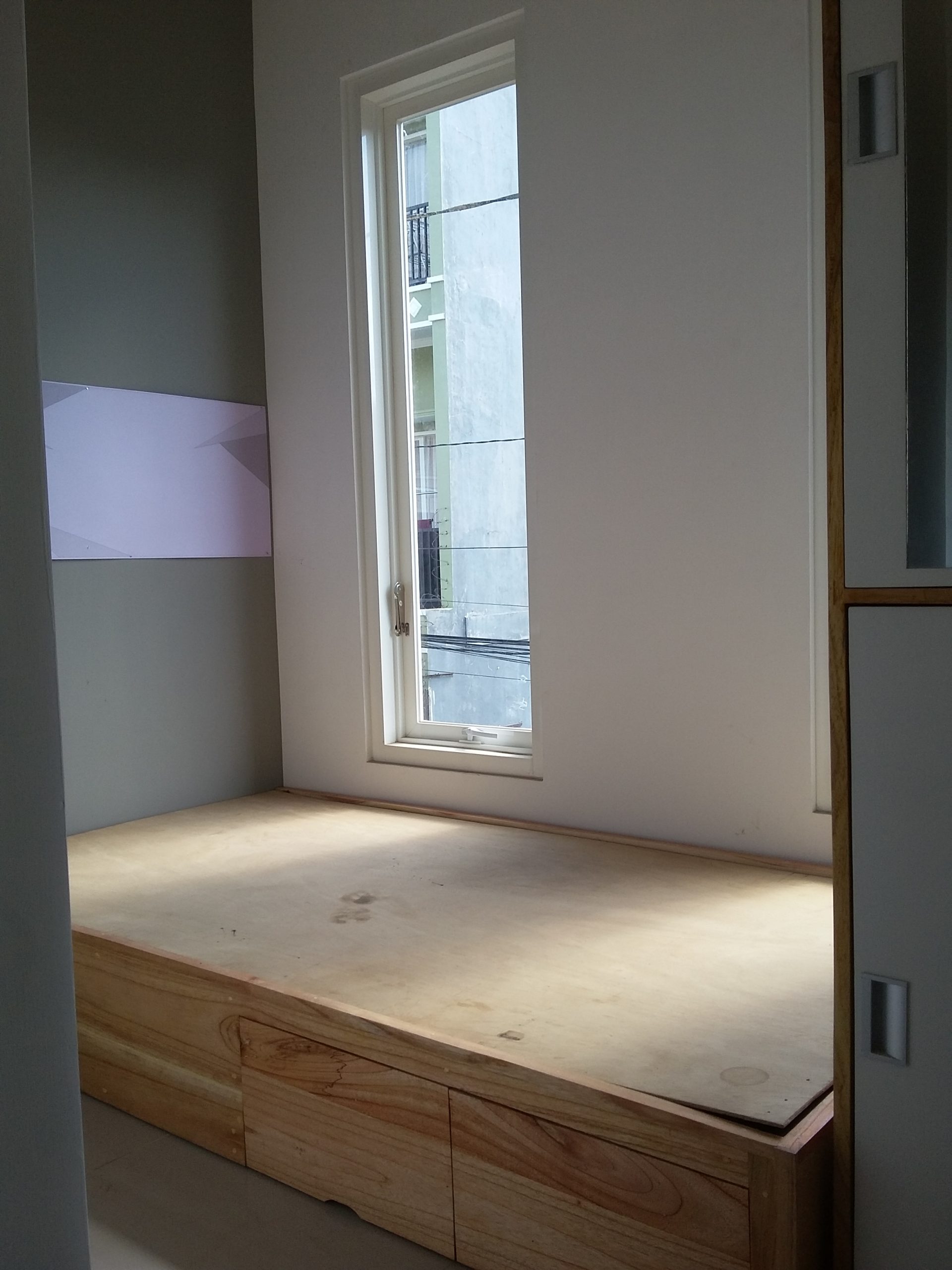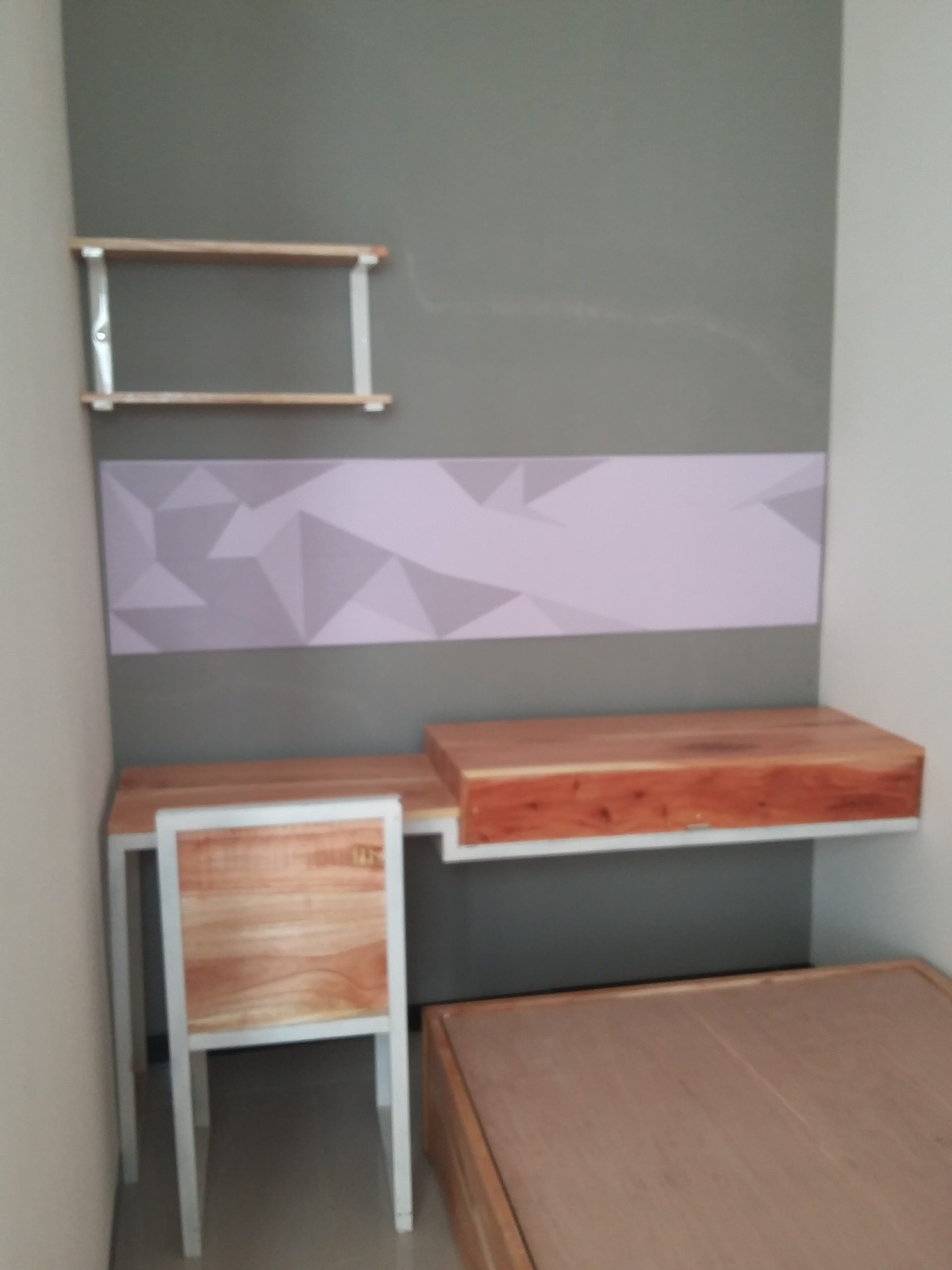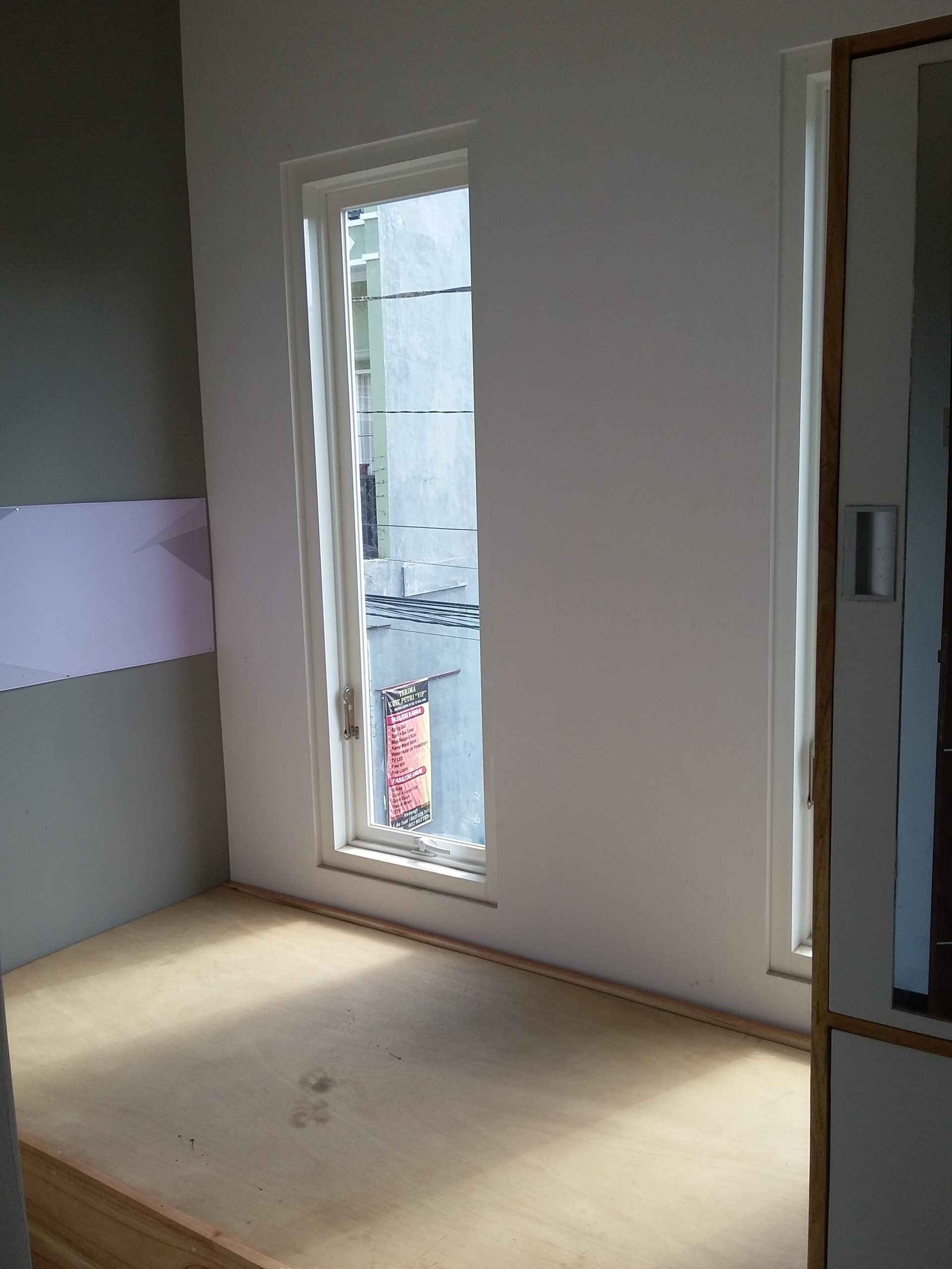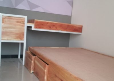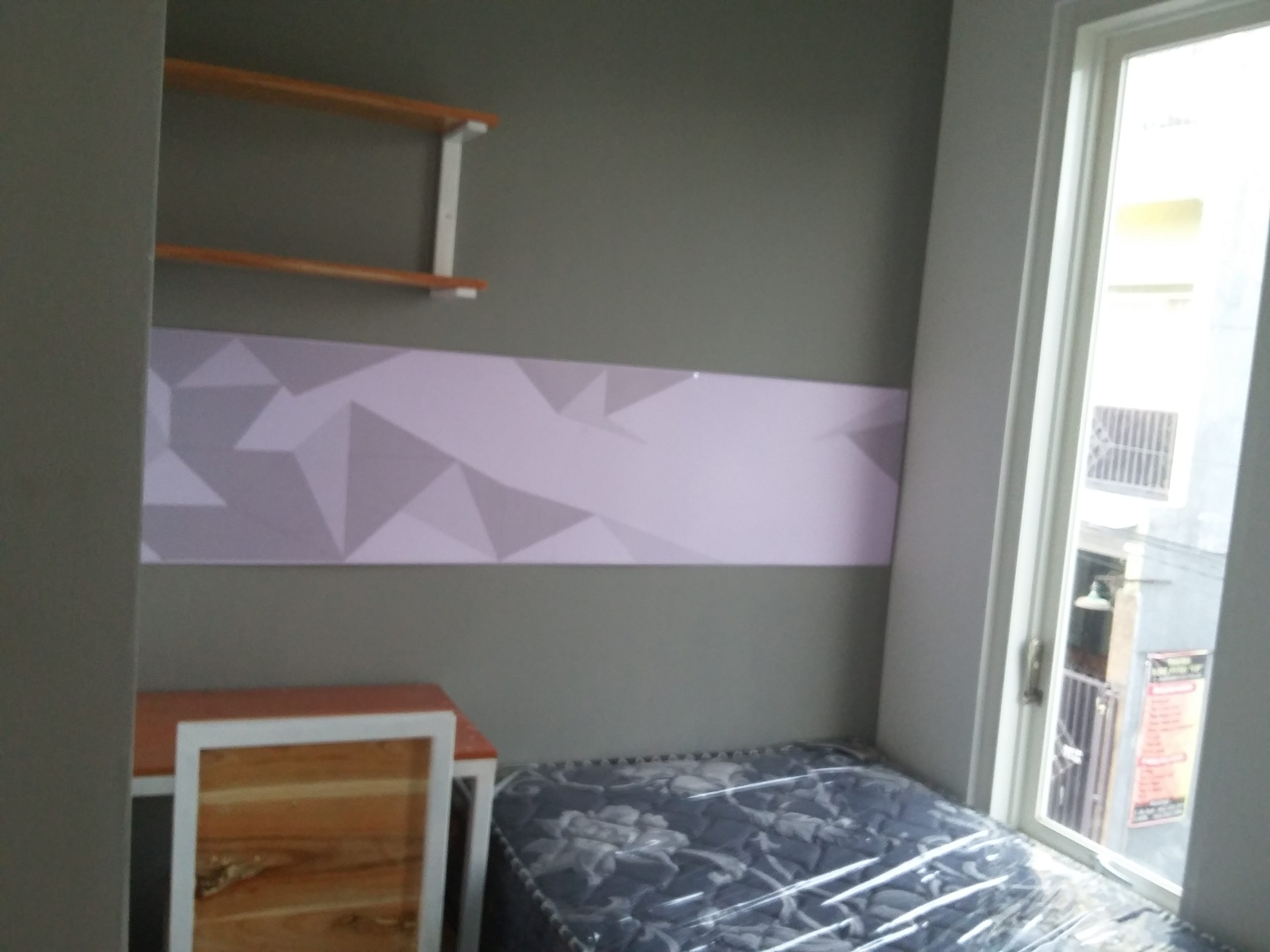 Proyek interior kos Sigura – Gura dengan item dipan, meja belajar, lemari dan finishing.
