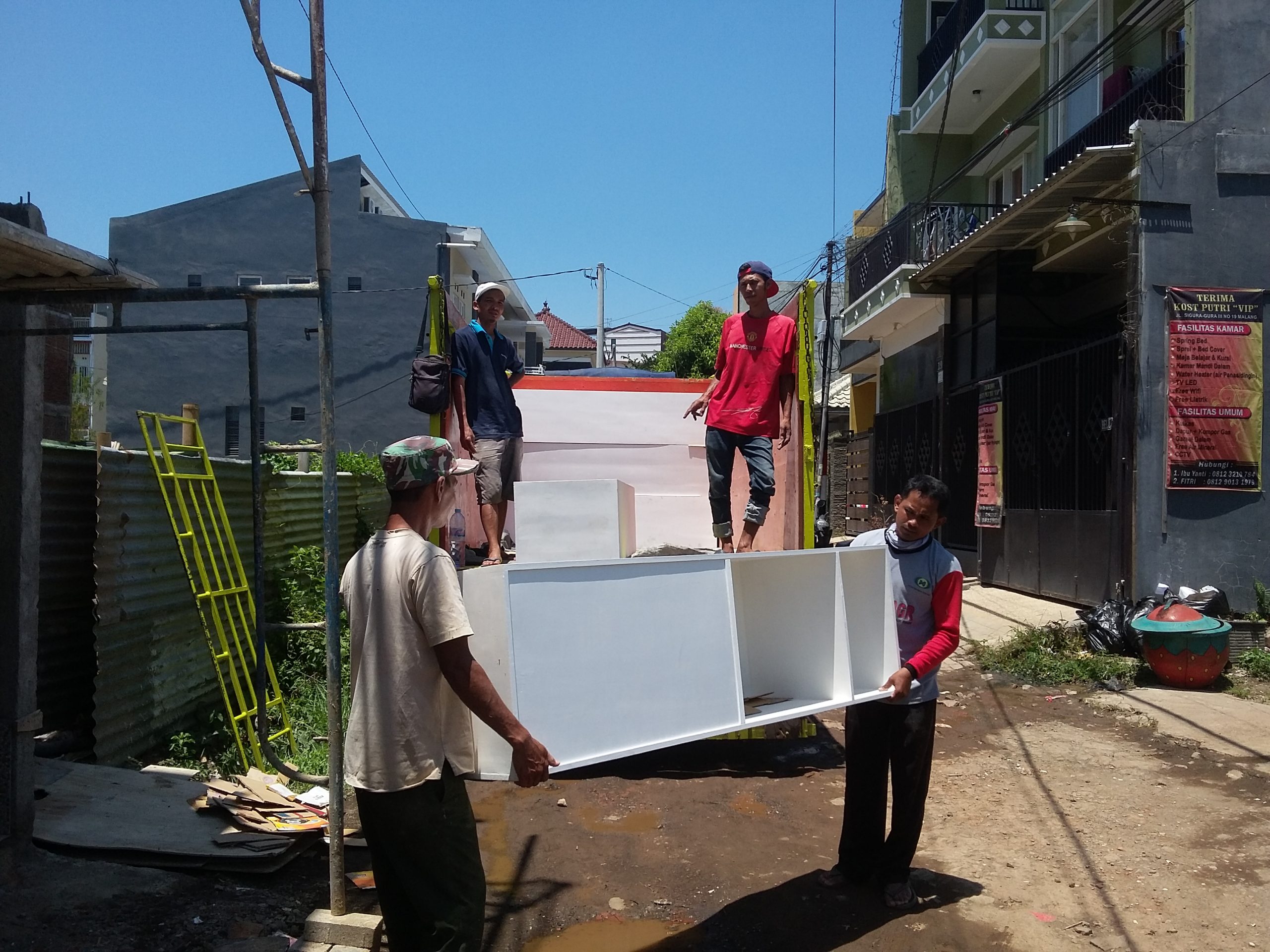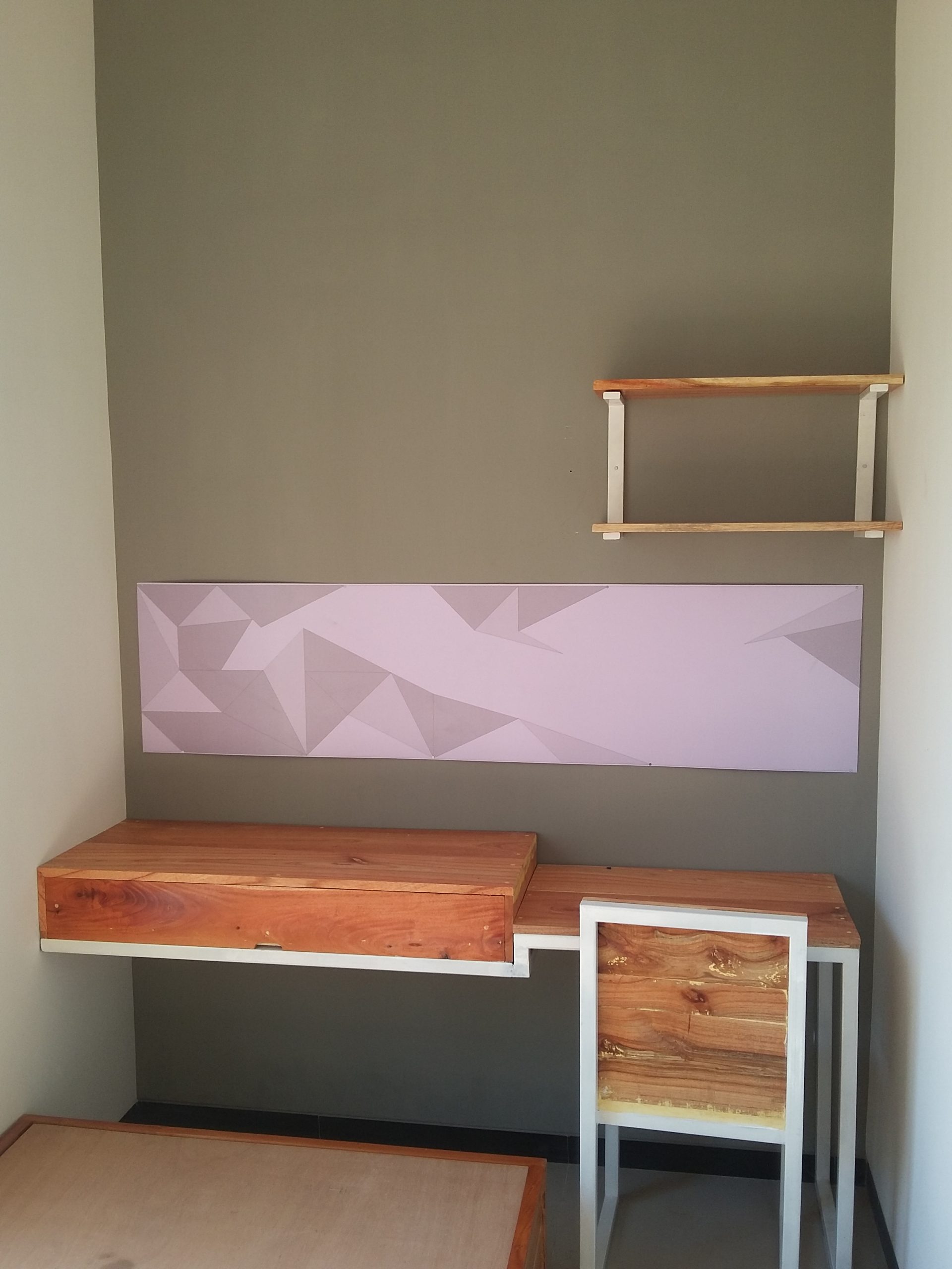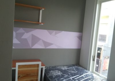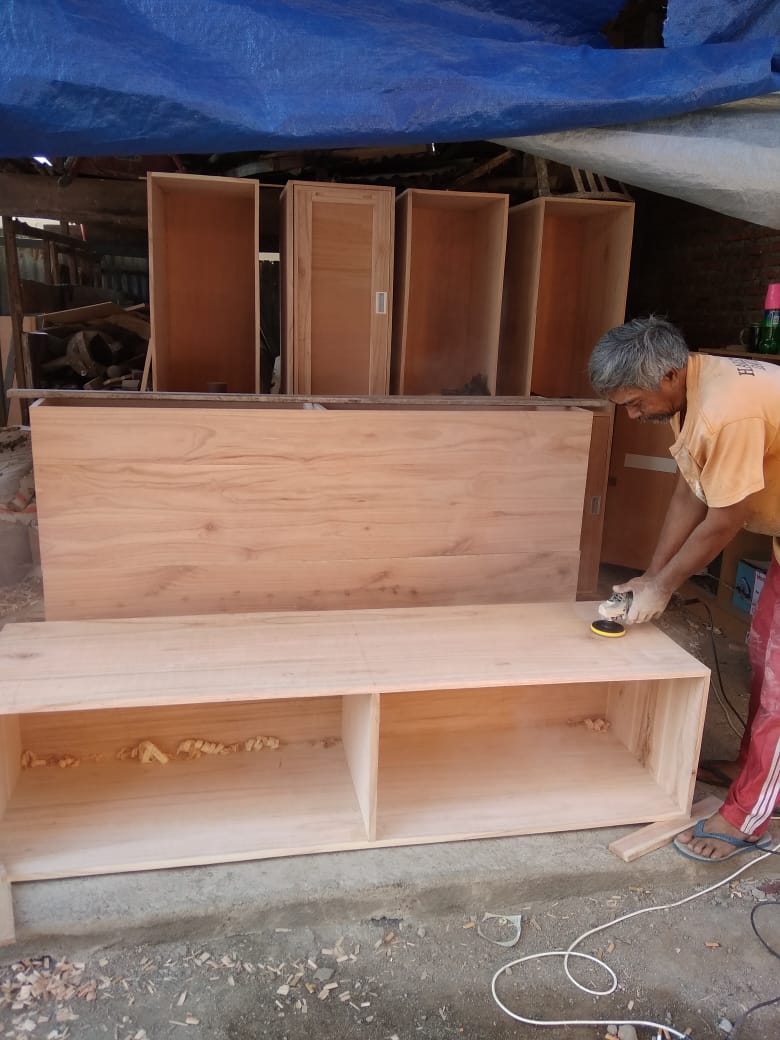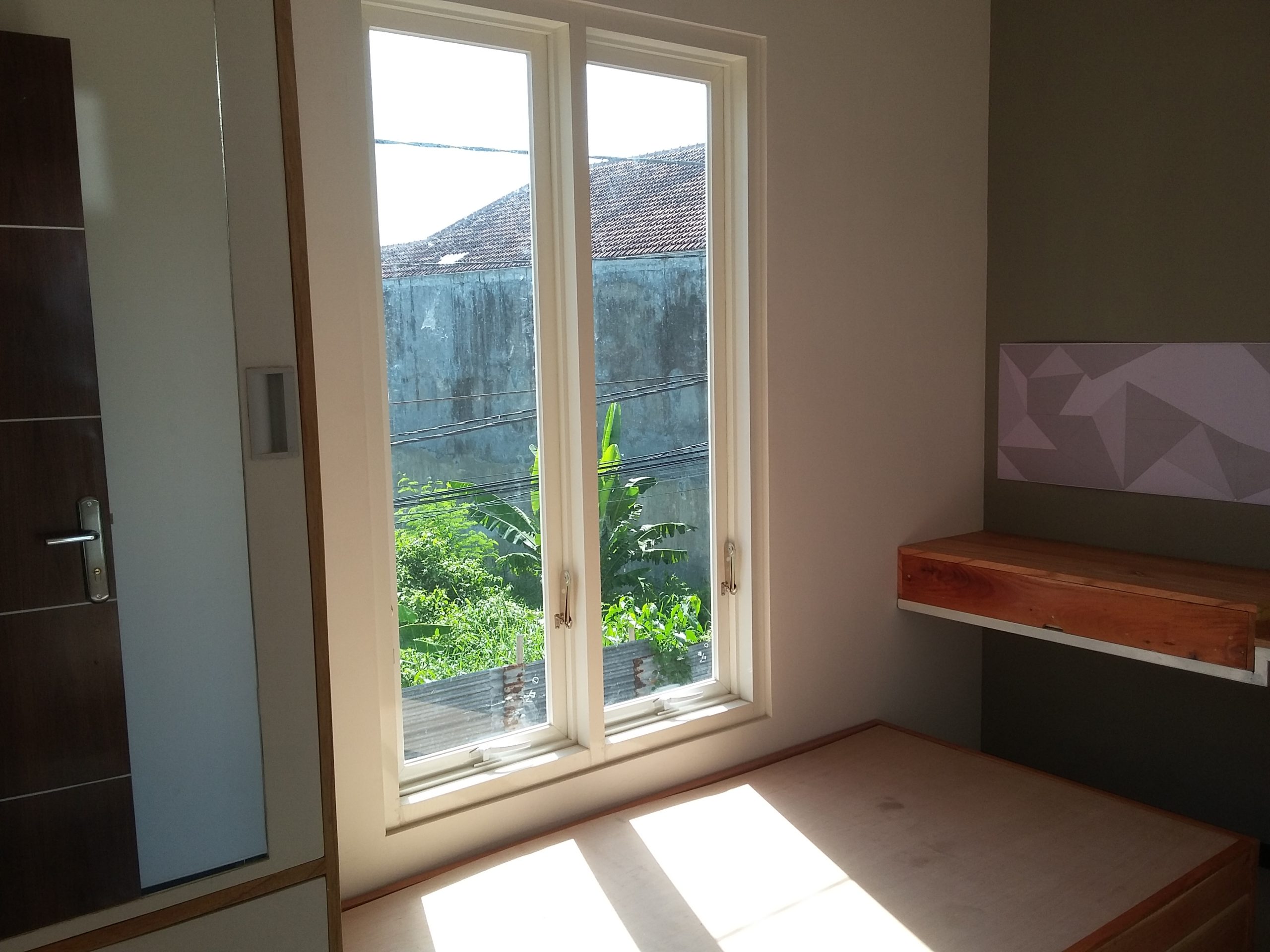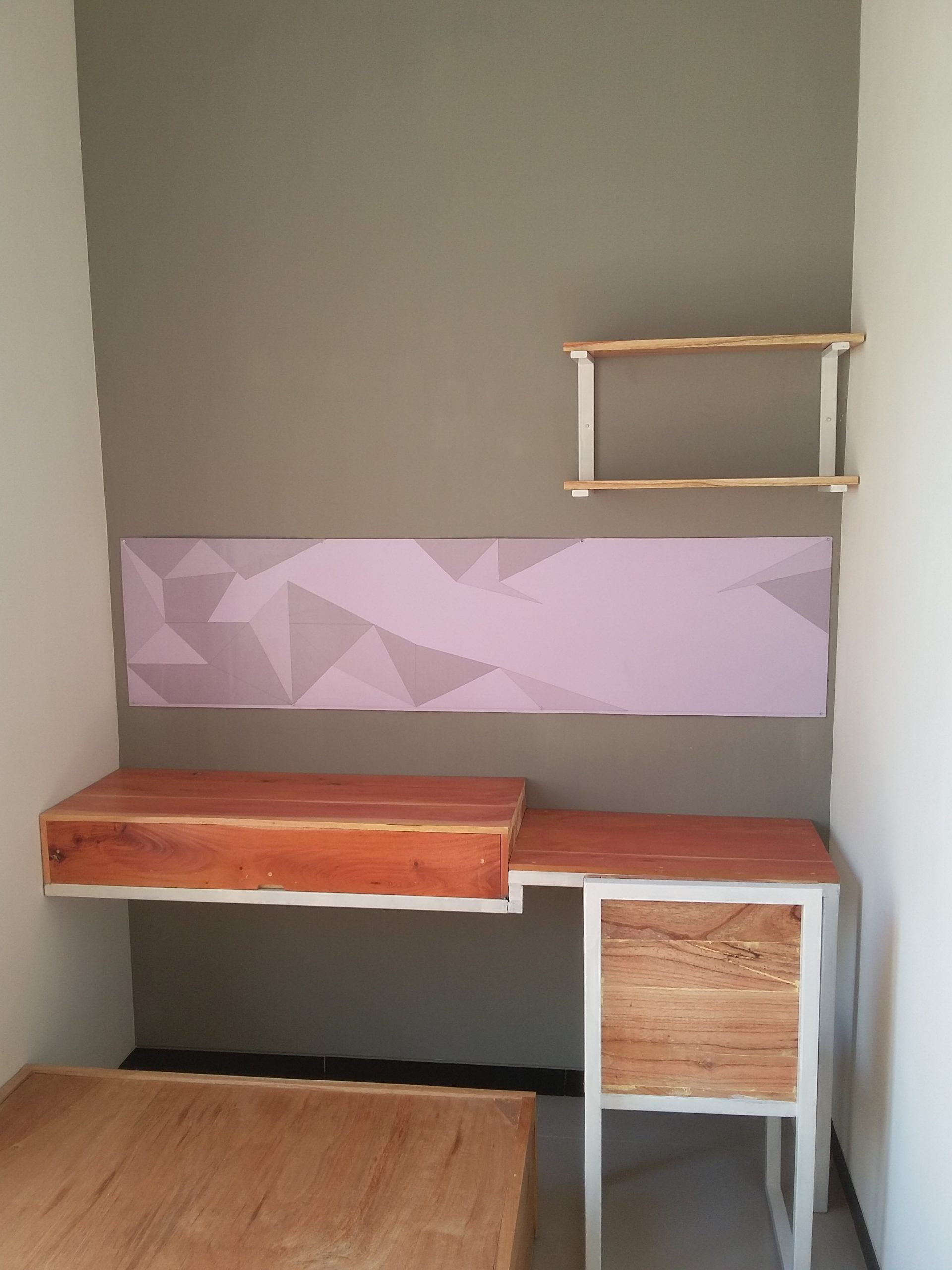 Proyek interior kos Sigura – Gura dengan item dipan, meja belajar, lemari dan finishing.