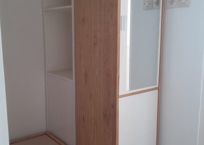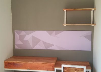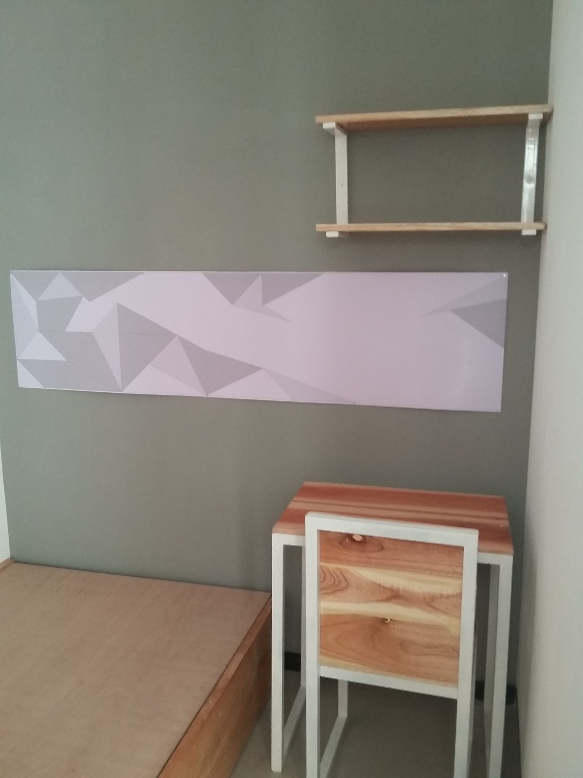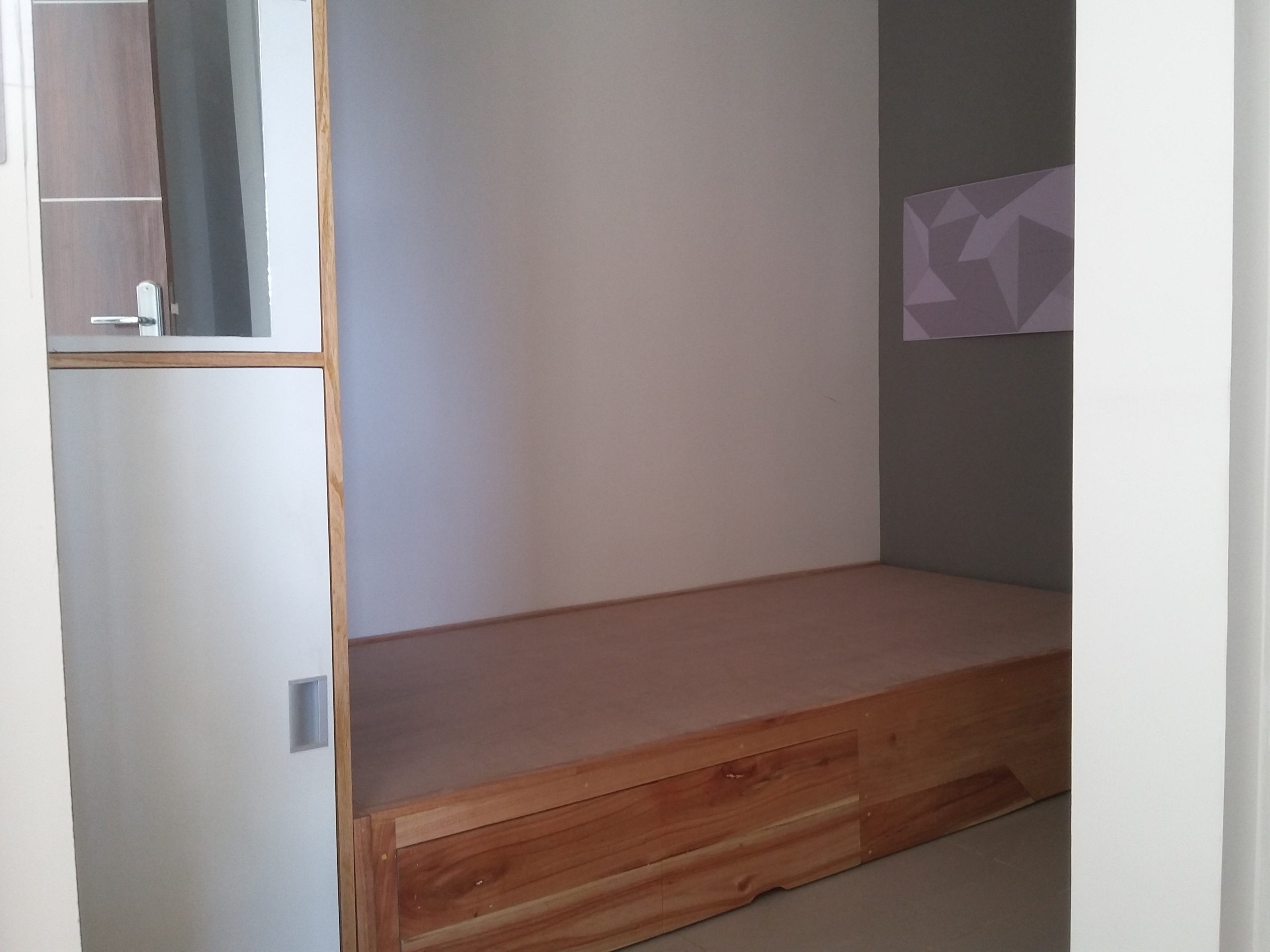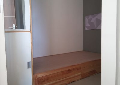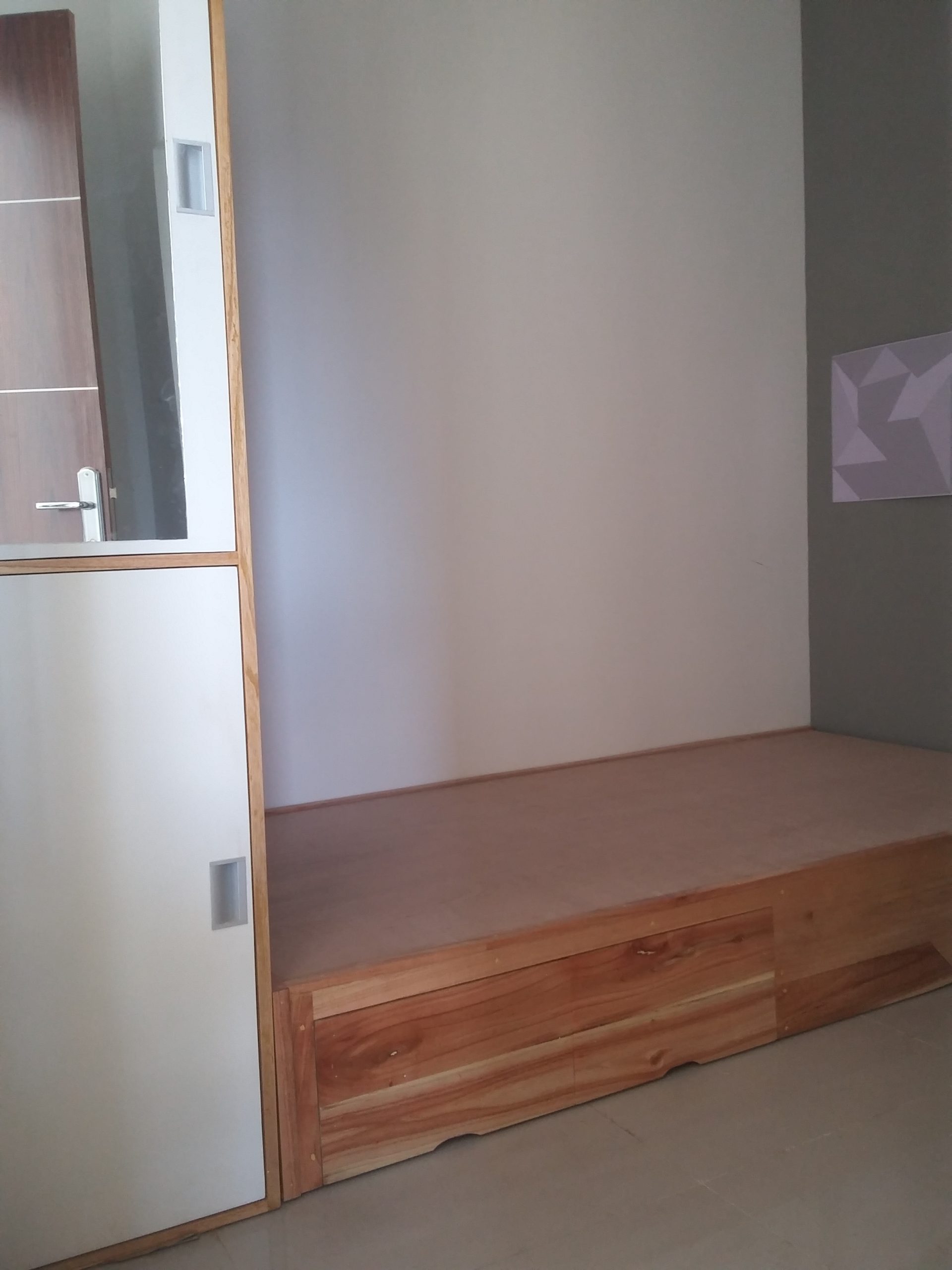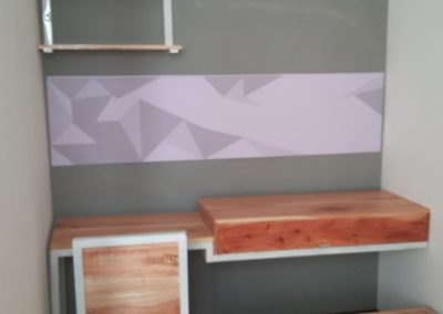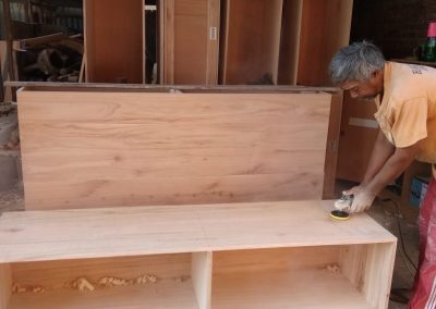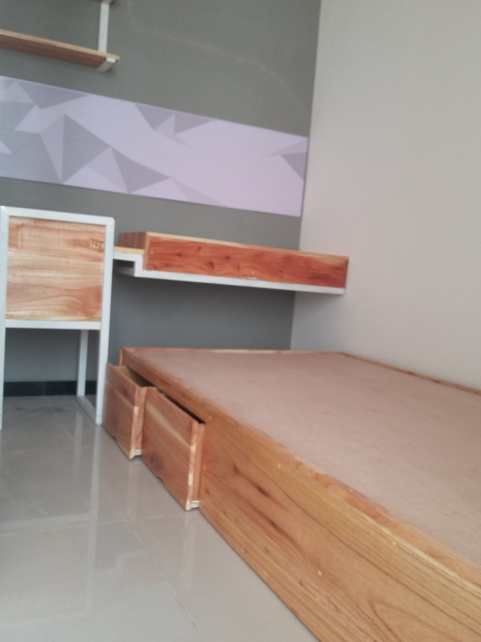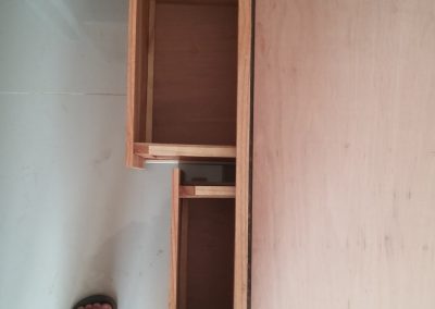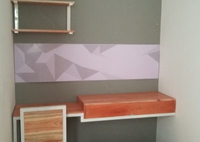 Proyek interior kos Sigura – Gura dengan item dipan, meja belajar, lemari dan finishing.